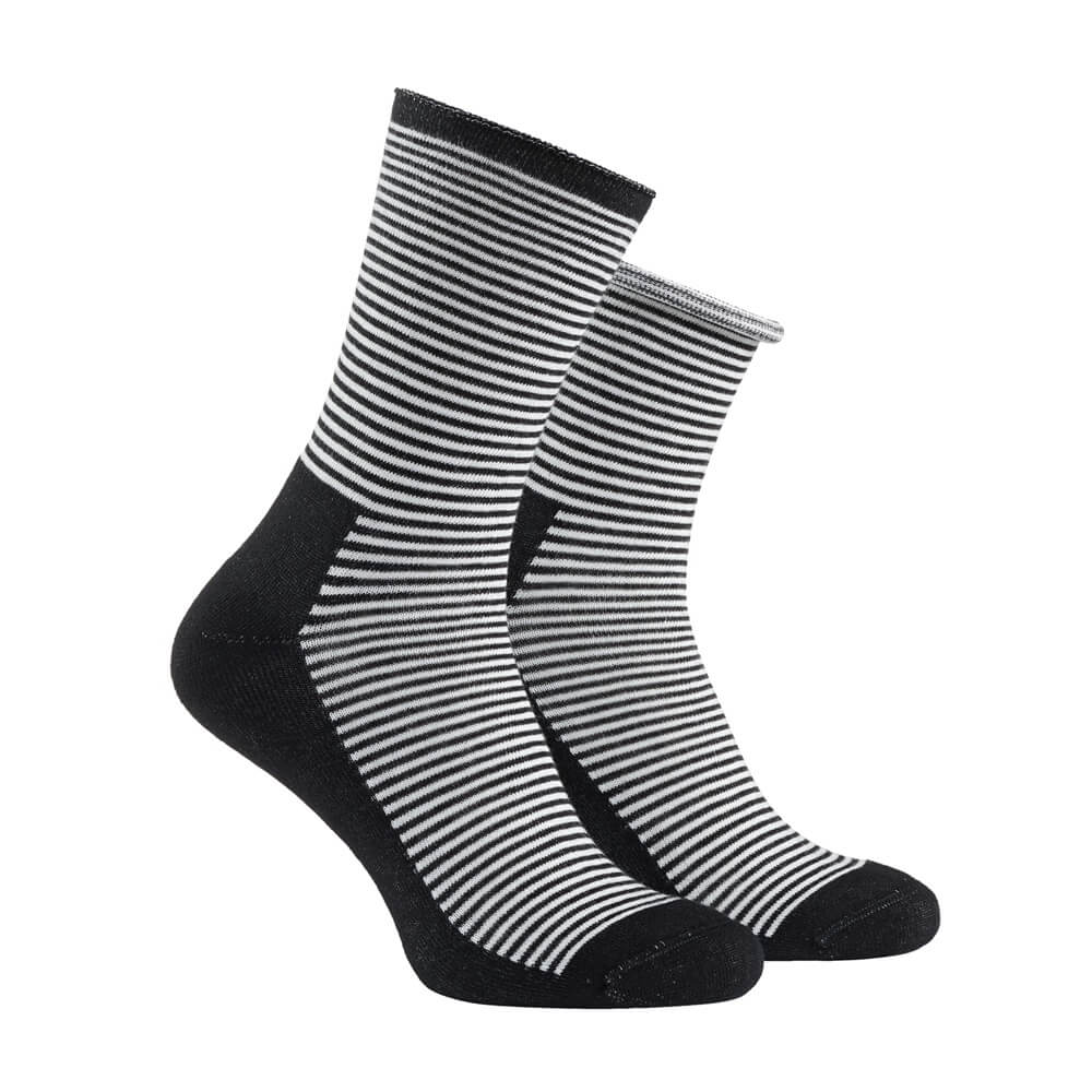Förutom bomull är strumporna stickade med en del polyamid och lycra som säkerställer en bra slitstyrka och en bekväm passform. Strumporna har en mjuk frottésula som motverkar skav och ger dämpning för känsliga fötter, samt hjälper till att hålla värmen. Invändigt finns heller ingen tåsöm som kan skava eller skapa obehag, vilket gör strumporna passande även för dig med känsliga tår.