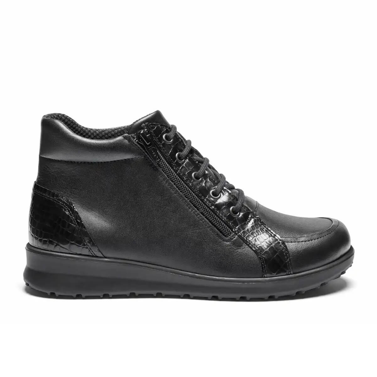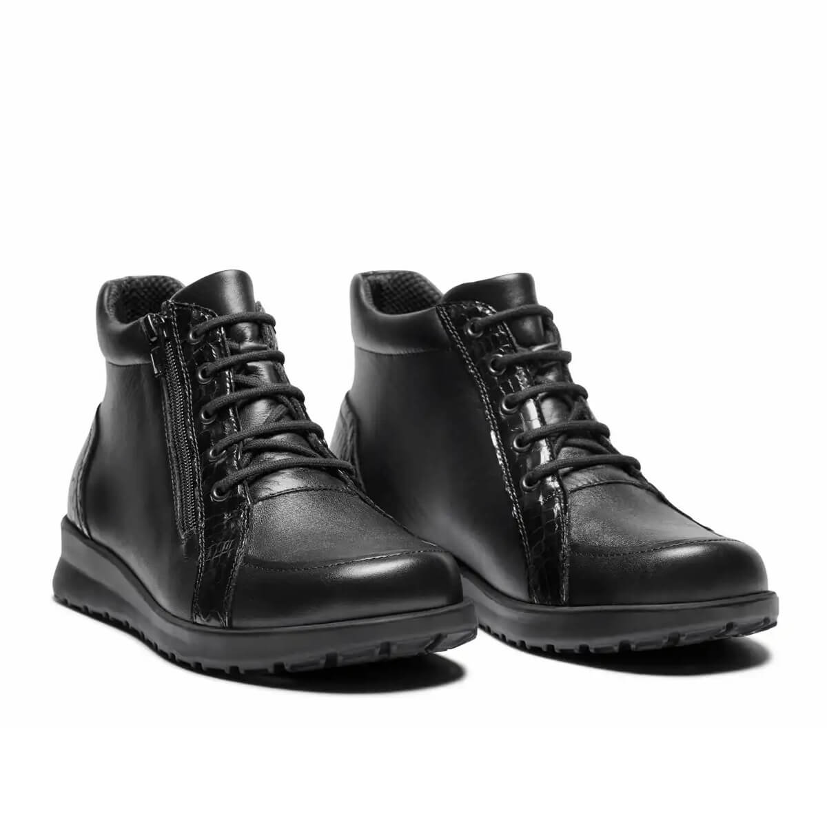Sköna damkängor i Orthostretch-material som anpassar sig efter foten. Är utrustade med båda snörning och dragkedja för att kunna öppnas upp rejält för att förenkla av- och påtagning. Hällyft 25 mm – fall 15 mm.